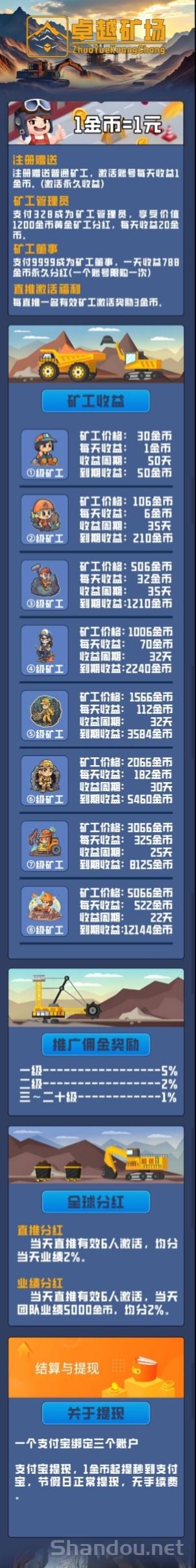 首码【卓越矿场】刚开盘注册就送普通矿工激活每天自动收益,1金币=1元,1元起提现秒到。