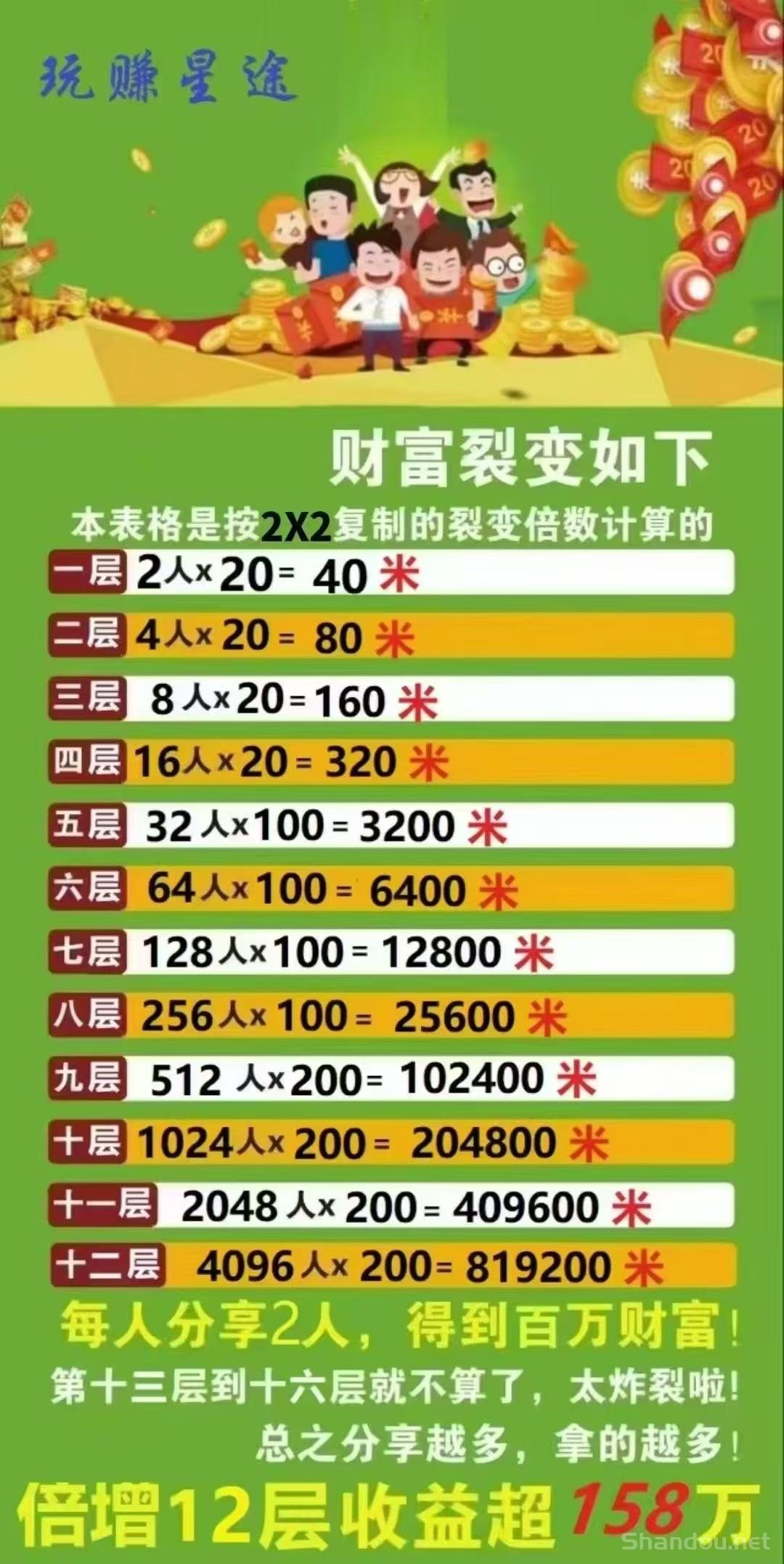5、每天现金流收入,风险小,推广回报大,裂变倍增,百元撬动百万。