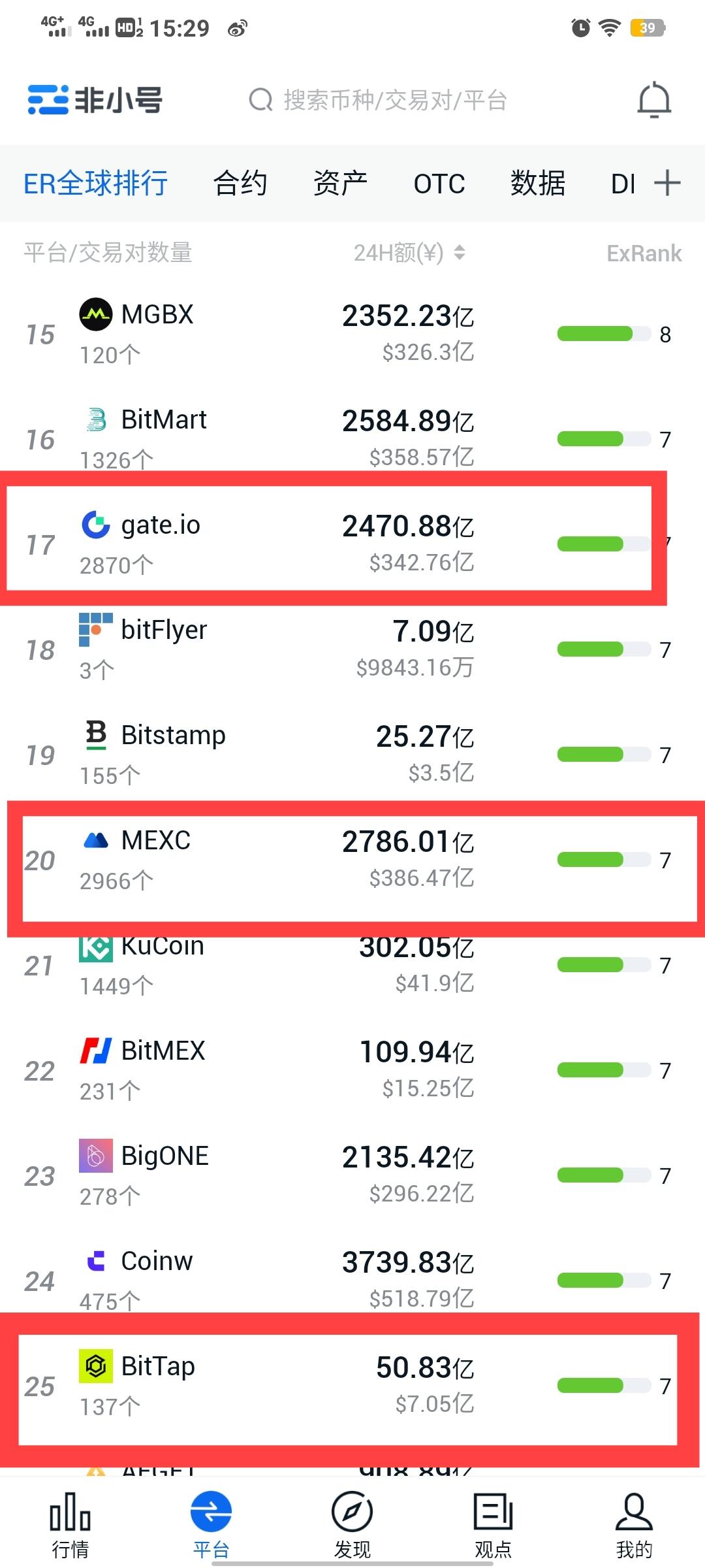 [恐惧]吊炸天!BitTap最新非小号排名25位,从无到有,从大几十名次一路逆袭数,据强的有的不可思议,双C可查数据A级,距离头部抹茶,芝麻GATE平台仅有几个身位只差!