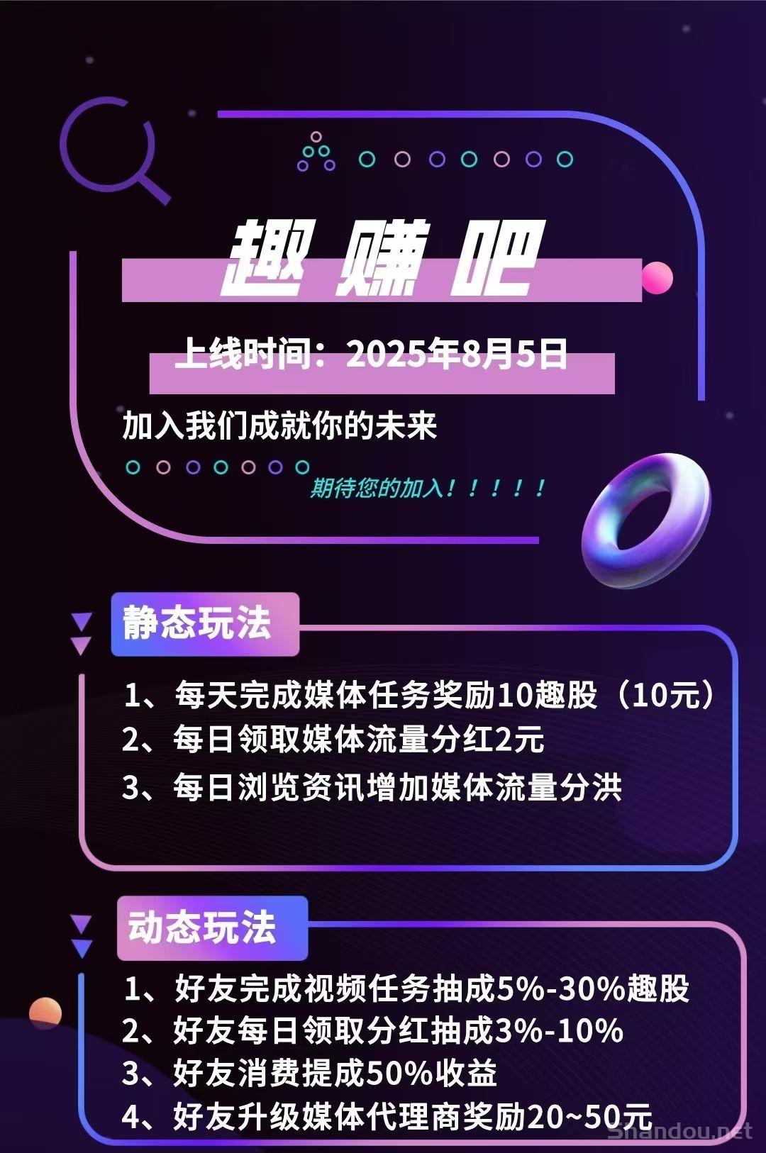 正文 【趣赚吧】首码刚出,火爆全网,超级首码零撸神盘,领取趣味股得分红 官方推荐 V评论者 /2025-08-06 /69 阅读 0806 趣赚吧,首码,即将火爆全网新赛道、新风口认准趣赚吧!引流+流量分红变现一体制每日完成15个广告任务得10股,每天自动广告分洪.媒体代理每天额外领2元媒体流量分洪.推荐收益20~40宝妈、上班族人人可做可零撸,可投资,实现居家创业!注册链接 :https://qzb.mailuoads.cn/#/pages/login/reg?invite=KBNYFE 声明:本站所有文章均来自网络用户投稿,需要消费、投资的项目请注意识别真伪,本站只负责信息刊登,不提供内容鉴别及纠纷问题。投稿内容若侵犯了您的权益请及时联系客服删除。