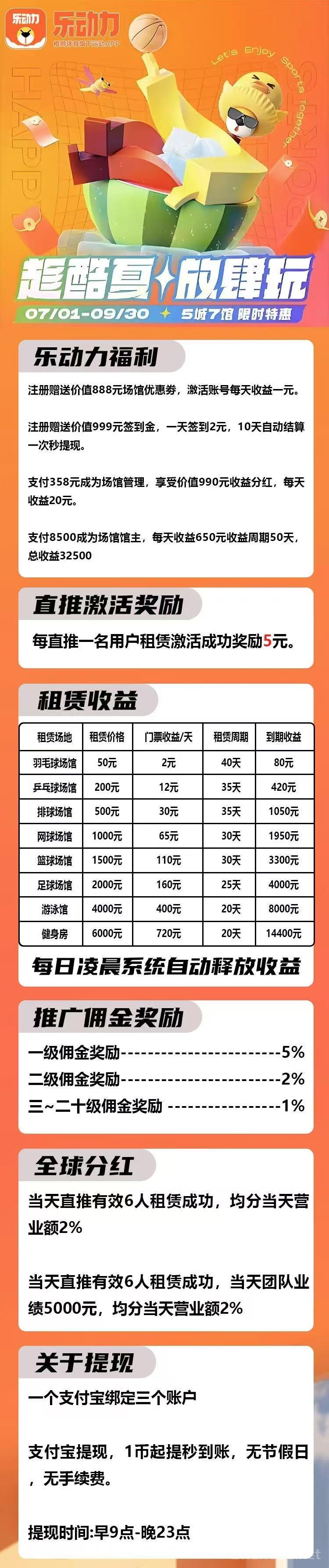 限时注册赠送价值 888 场馆优惠券,(激活)每天释放收益3元。提现秒,到