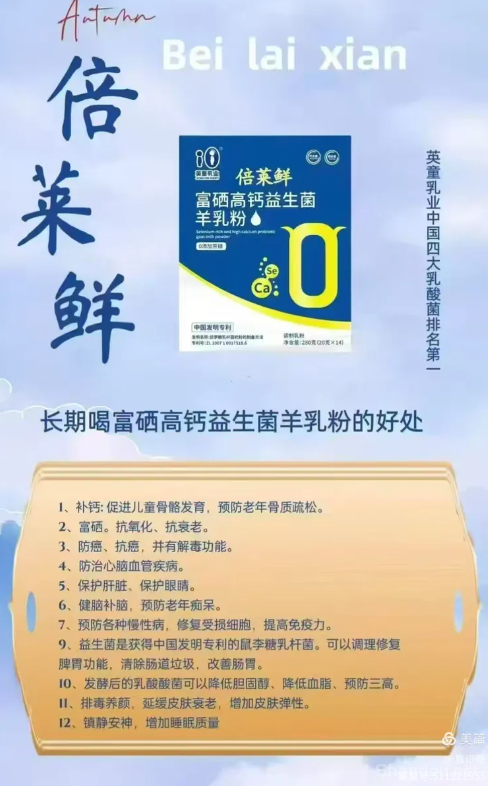 √是国内唯一一家发酵型的羊奶(唯一发了酵的羊奶,更小的分子,更多的活性物质,更加的营养,更好的吸收,发酵技术获得国家发明专利)