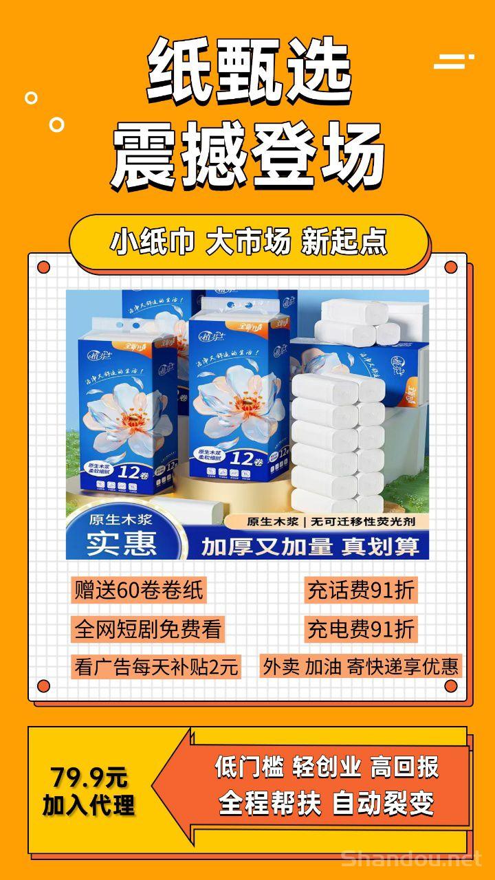 加入纸甄选只需79.9圆,就能成为代哩,享受包邮赠送60卷卷纸的福利。每天签到还可领取2圆补贴,轻松积累收入。此外,平台还为用户提供了全网爆款短剧免费观看、话费和充电费优惠等福利,极大地提升了用户的参与感和收溢潜力。