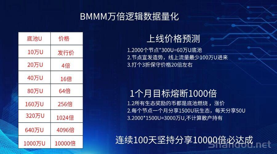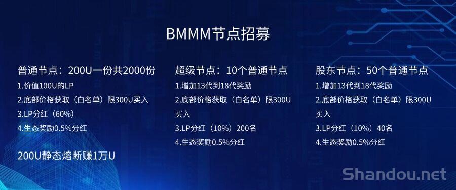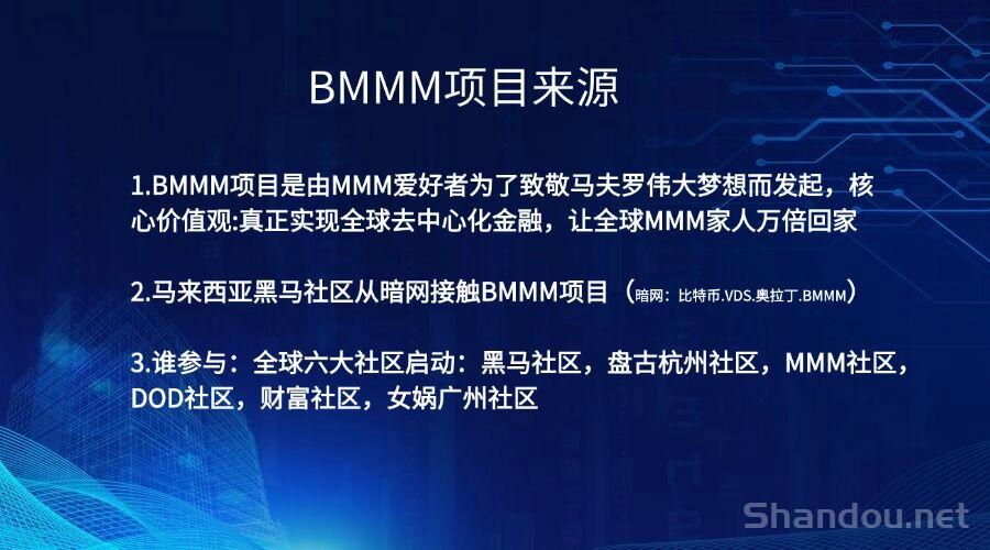 1.BMMM项目是由MMM爱好者为了致敬马夫罗伟大梦想而发起,核心价值观:真正实现全球去中心化金融,让全球MMM家人万倍回家
