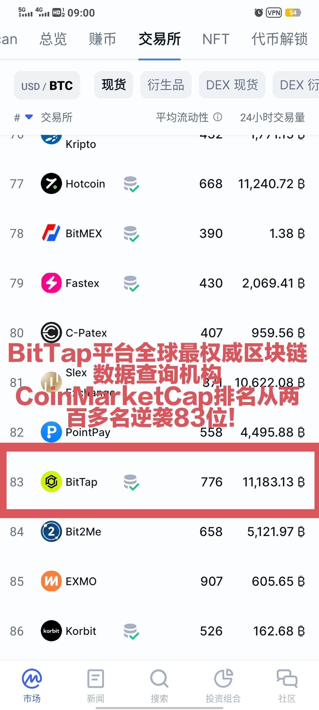 [强]见过逆袭最快的交以所吗?BitTap最新非小号排名19位,从无到有,从大几十名次一路逆袭,据强的有的不可思议,双C可查排名两百多位上升到83位数据A级,前段时间距离头部抹茶,芝麻GATE平台仅有几个身位只差!
