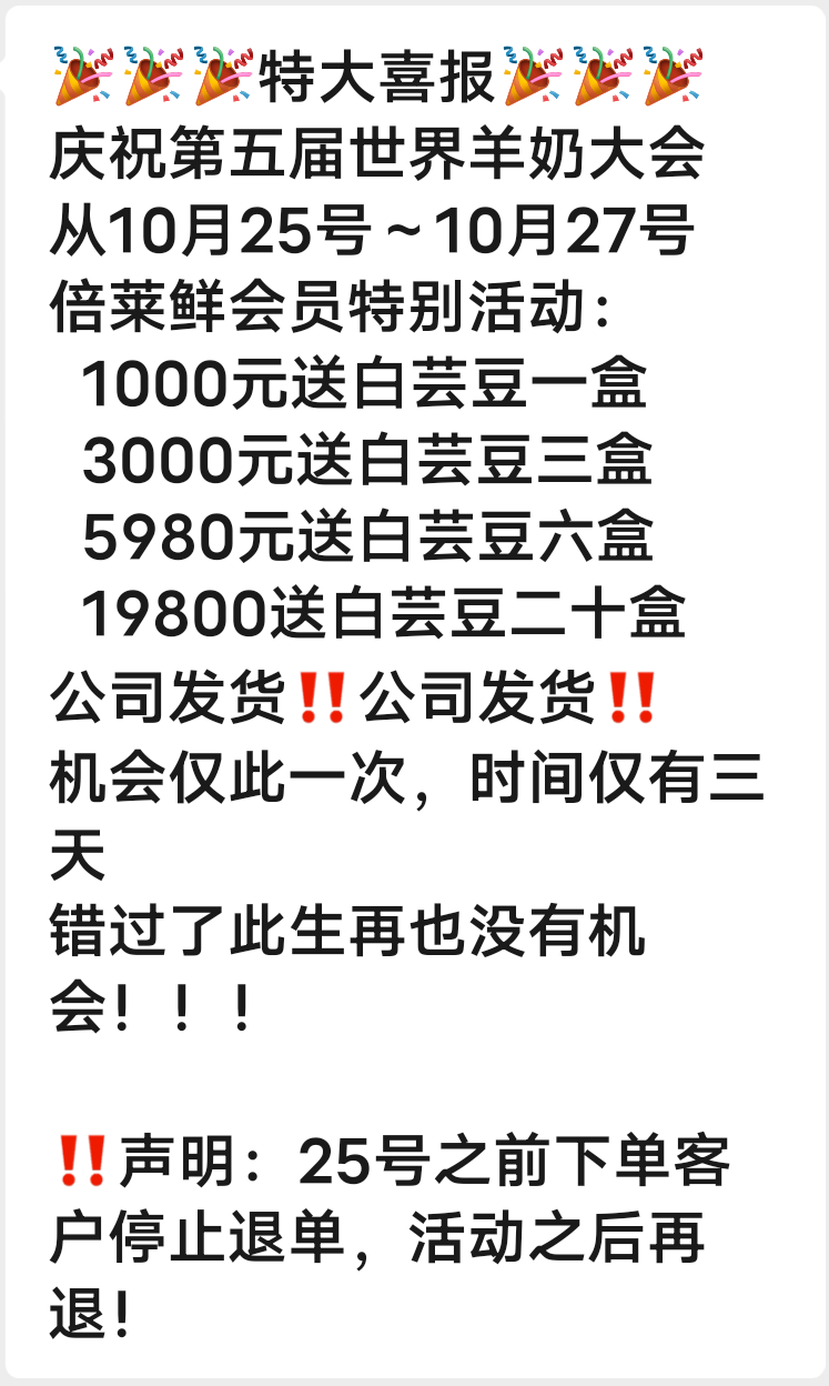 倍莱鲜是一款功能性羊乳粉,给用户带来健康的同时,还给予了赚钱商机。们倍莱鲜是一个巨大的复购商城。当你做好了羊乳粉,也就做好了一个商城,商城都是老百姓吃穿住用行的刚需产品,注册会员就可以享受出厂价。团队会员都会复购各种各样的刚需产品,达到级别就有复购奖励和复购分红,这样巨大复购红利就会塞满我们钱包。